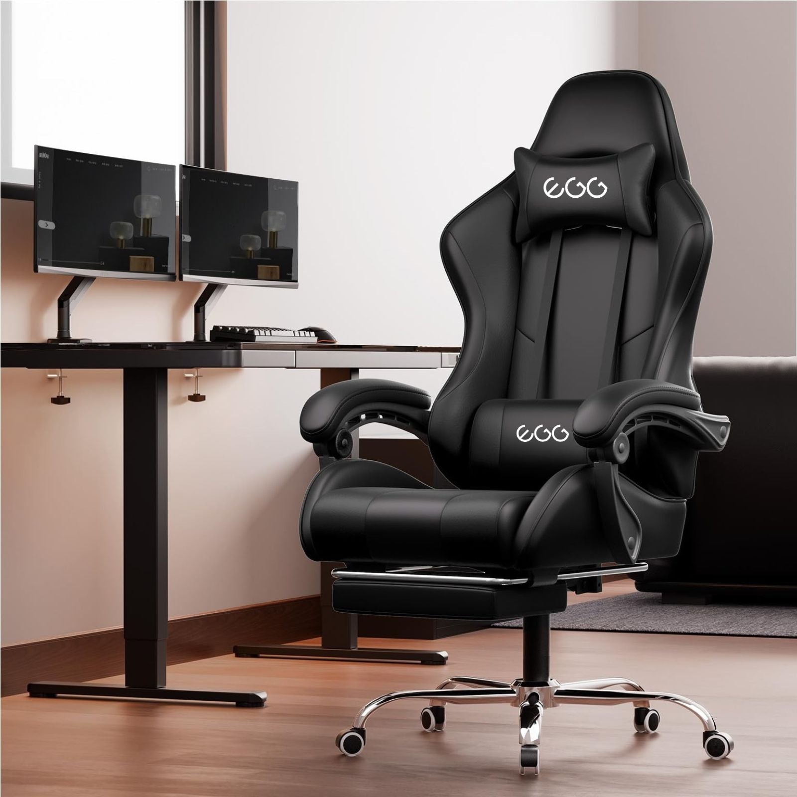 High Quality Materials : The Cushion, Backrest and Armrest of The Computer Game Chair are Filled with High-Density Foam and Made of Soft, Breathable and Colorful Pu Leather.Essential Features:You can Achieve a 135 ° Tilt, Provide You with Support. Smooth Rolling Wheels and 360 Degree Rotation. Height Adjustable, A Sturdy and Durable Steel Base