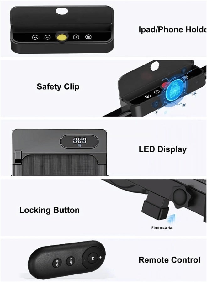 حول منزلك إلى استوديو لياقة شخصي مع جهاز المشي القوي ١.٧٥ حصان الذي يتحمل حتى ١٠٠ كيلو ويُطوى للتخزين السهل. 🏃♂️ استمتع بتمارين سلسة مع ريموت كنترول مريح وحامل آيباد مدمج للترفيه وسهولة النقل بالعجلات المدمجة.