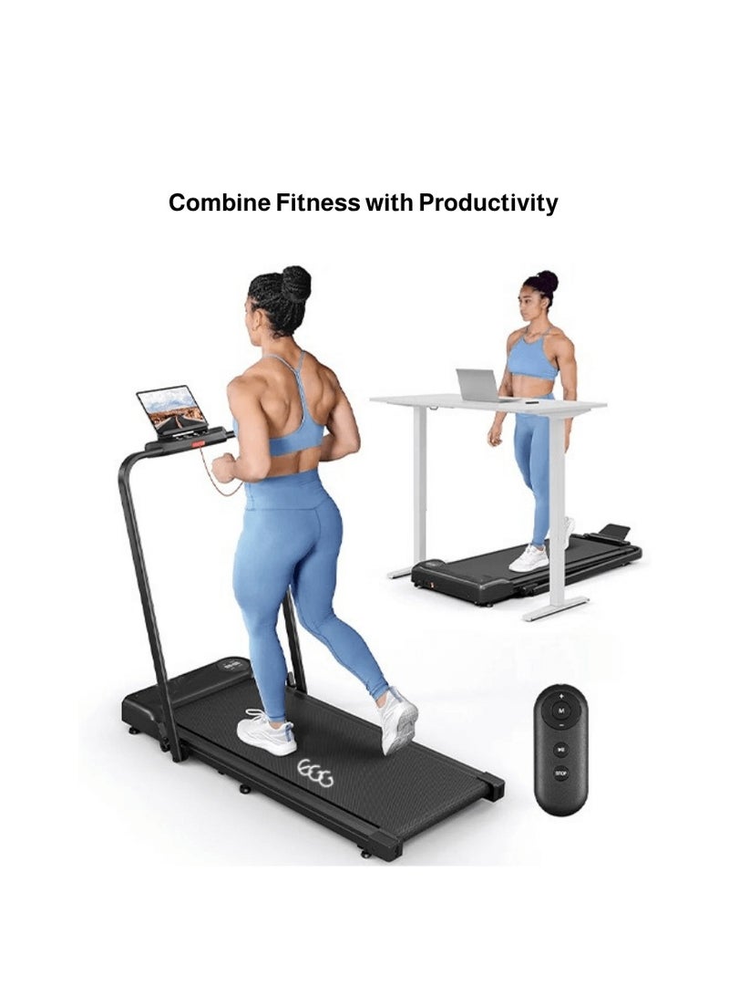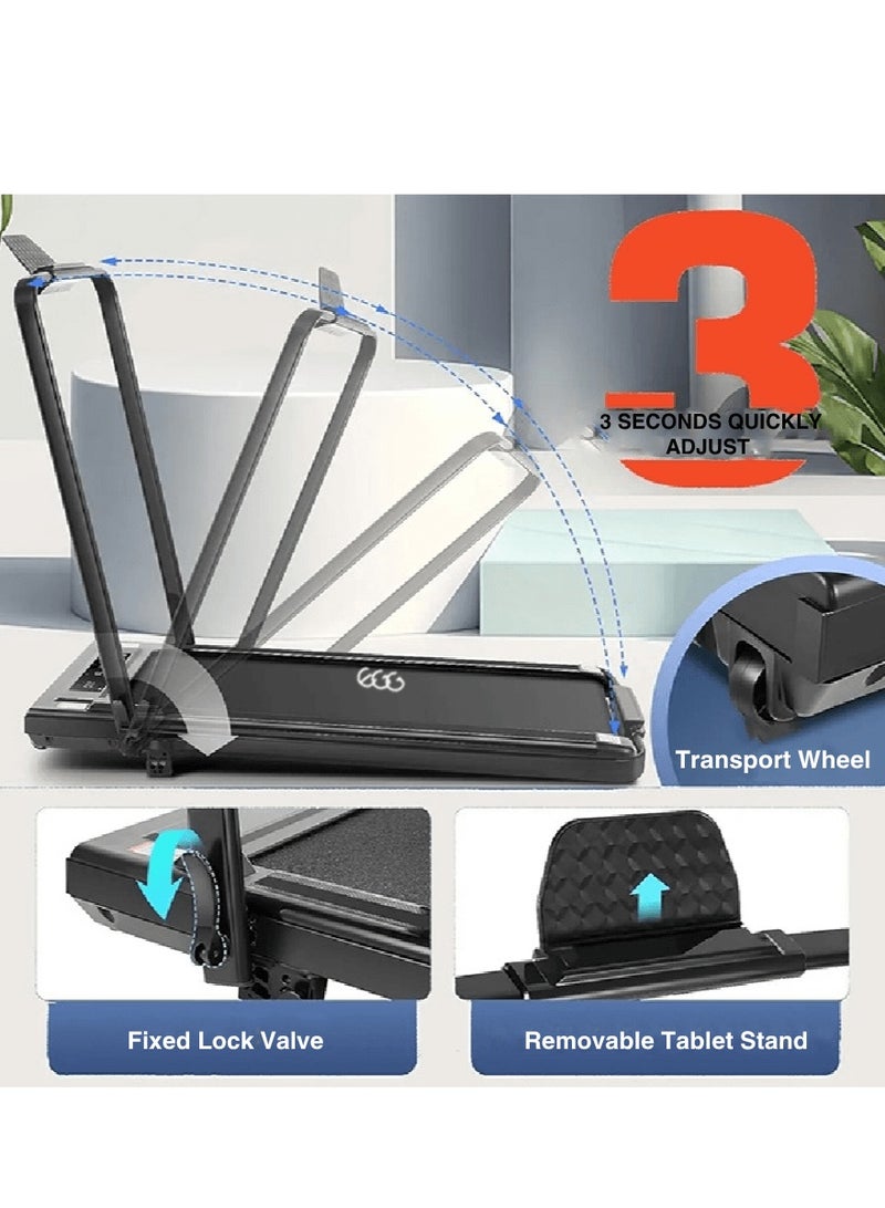 جهاز جري كهربائي احترافي 1.75 حصان قابل للطي 2 في 1 يتحمل 100 كيلو مع ميل يدوي مستويين وريموت كنترول مجهز بحامل آيباد وعجلات للحركة السهلة للاستخدام المنزلي واللياقة البدنية
