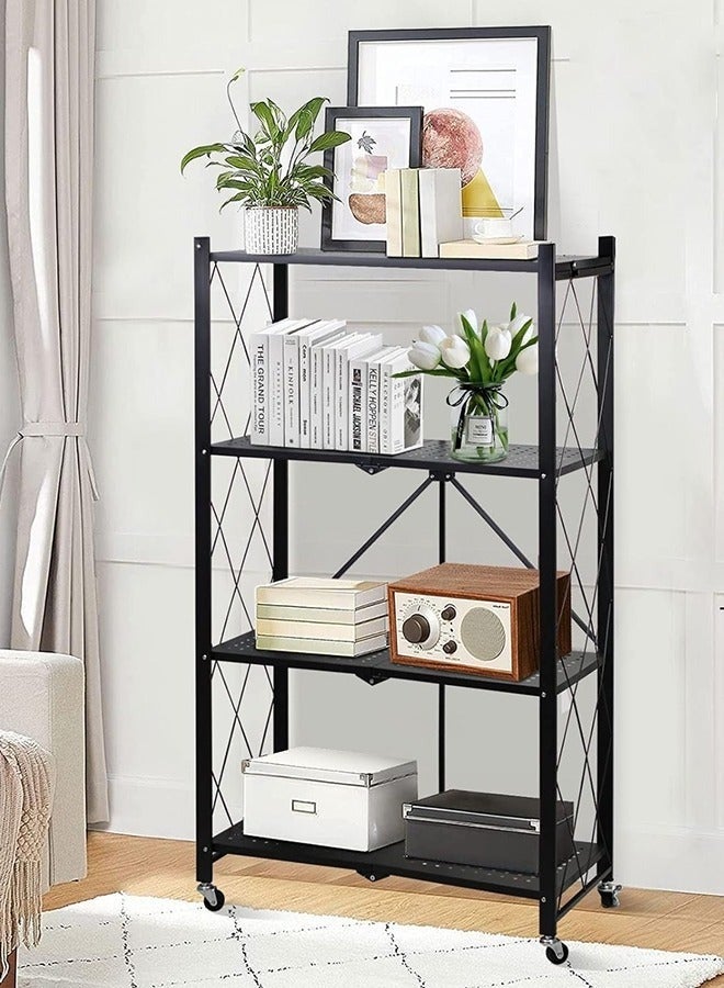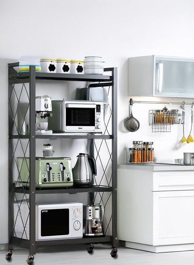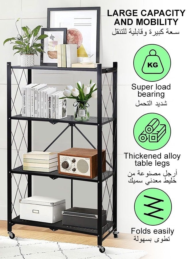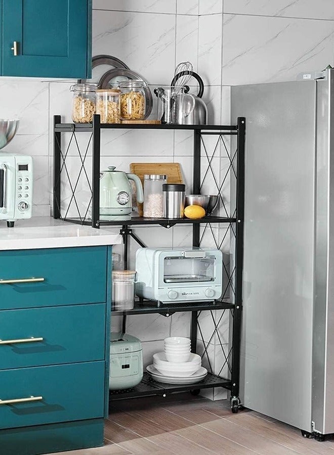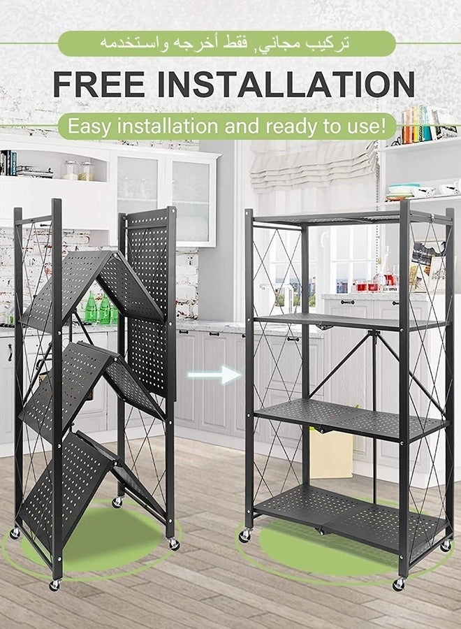 - منظم المطبخ مع 4 رفوف قابلة للطي وإطار حديدي وعجلات: الكمال لمساحتك المطبخية