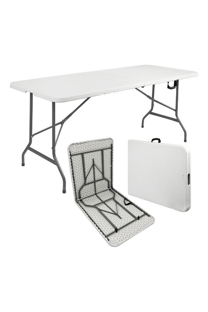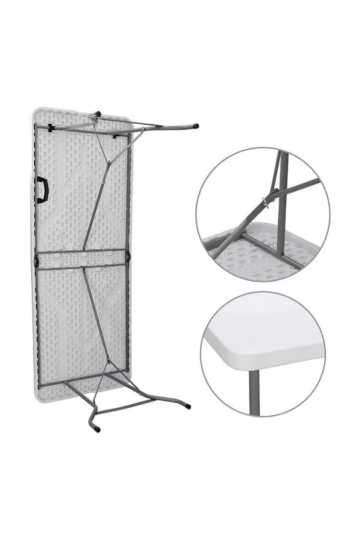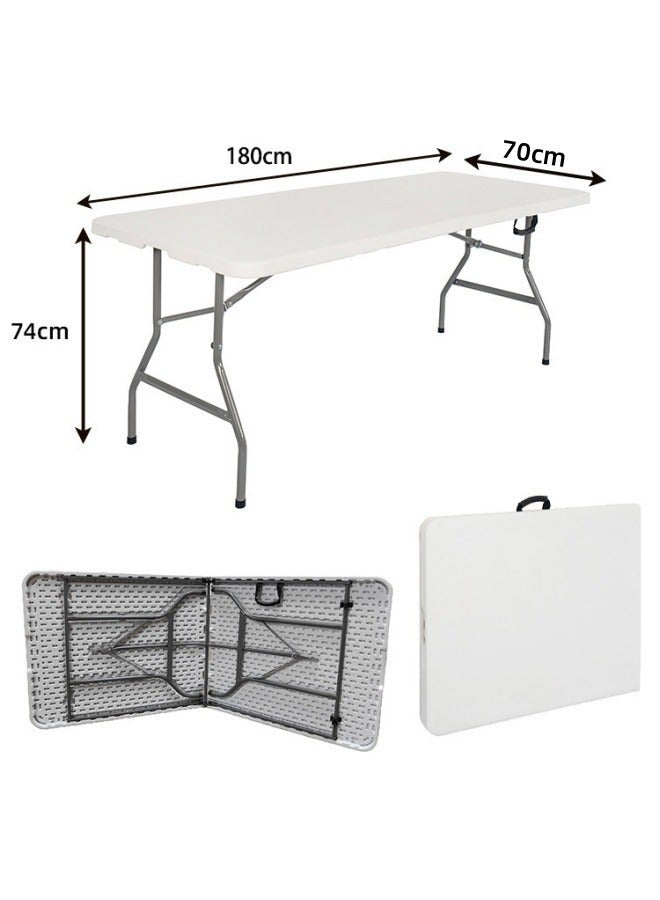طاولة التخييم المحمولة القابلة للطي -طاولة نزهات بيضاء مقاومه للماء 180×70×74 سم مع أقفال فولاذية للسفر في الهواء الطلق والمناسبات الداخلية