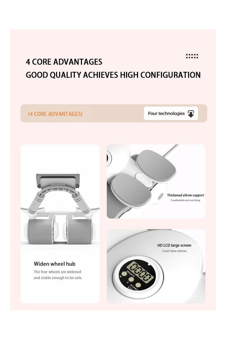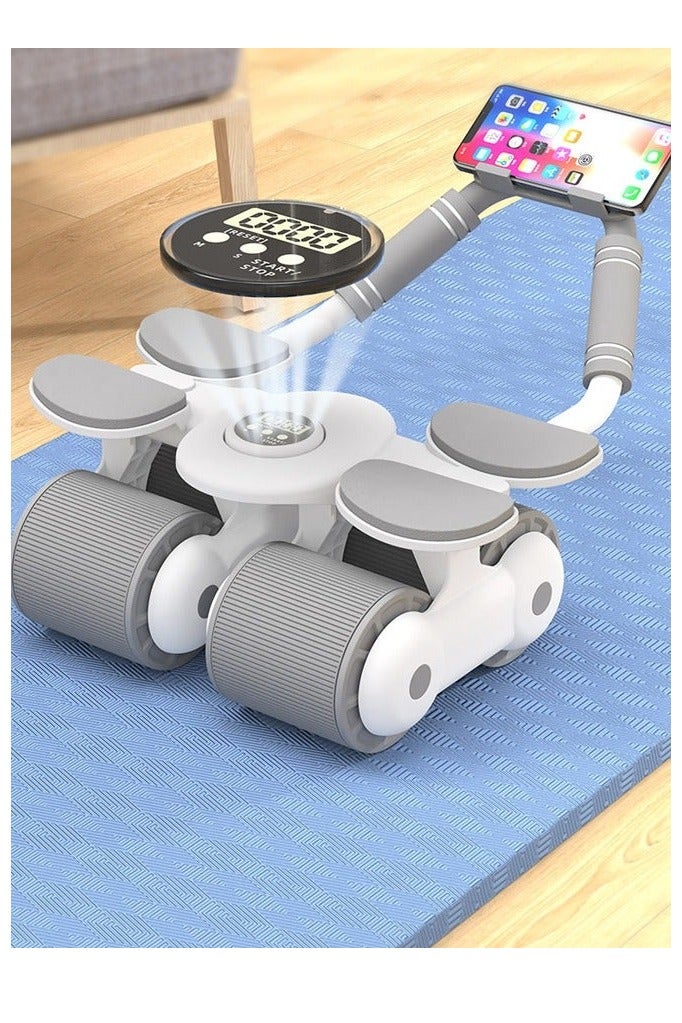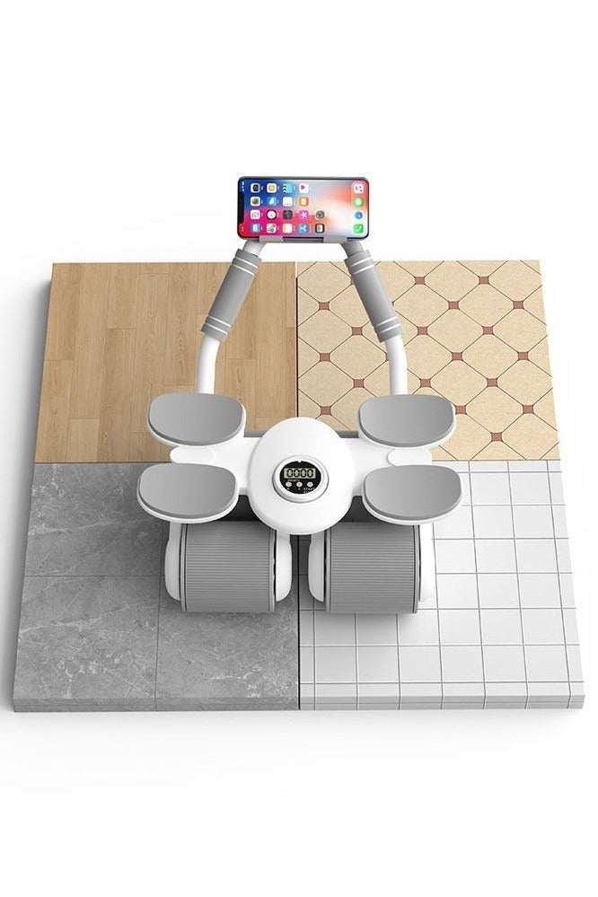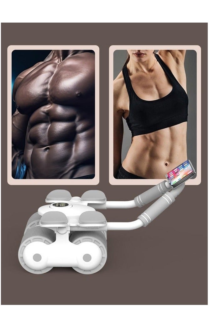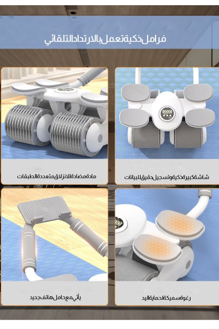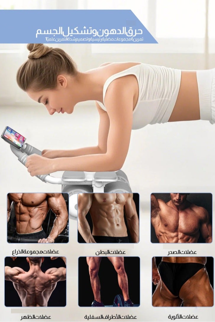 عجلة بطن بآلية ارتداد تلقائي مع مساند للمرفق ومؤقت، للجنسين، أبيض