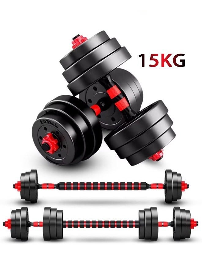 مجموعة دمبل قابلة للتعديل بوزن 15 كجم قابلة للتحويل إلى أثقال، زوج من الوزن الخفيف لصالة الألعاب الرياضية المنزلية ومعدات النساء والرجال