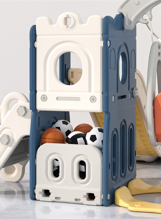 🏀 ترفيه شامل 5 في 1: زحليقة وأرجوحة وسلة كرة وسلم تسلق ومساحة تخزين في مجموعة واحدة مدمجة