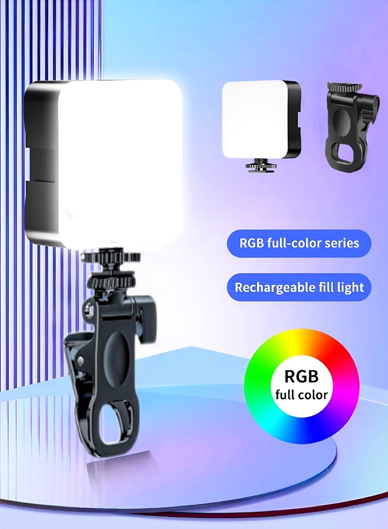 مقطع ضوء التصوير الفوتوغرافي للهاتف والكمبيوتر ، ضوء الفيديو، لوحة ضوء حشو كاميرا LED المحمولة القابلة لإعادة الشحن، ضوء الهاتف المحمول LED للجيب، قابلة للتعتيم 3 تأثيرات الإضاءة، زاوية تعديل 180 درجة، مؤتمر إضاءة الفيديو، TikTok، YouTube