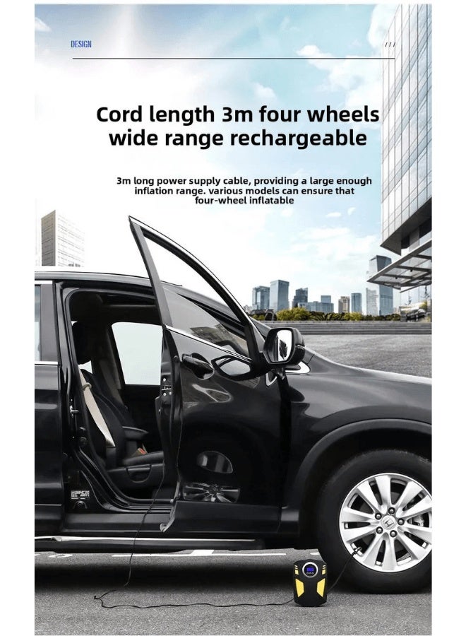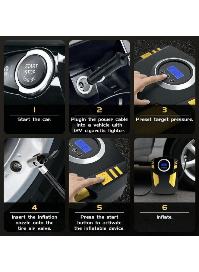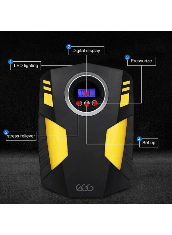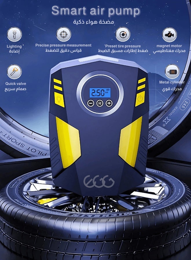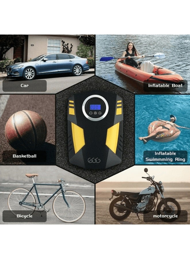 منفاخ إطارات السيارة الرقمي ضاغط هواء مع توقف تلقائي وإضاءة LED 12 فولت مضخة هواء محمولة سريعة للسيارة والدراجة النارية ومرتبة هوائية كروية