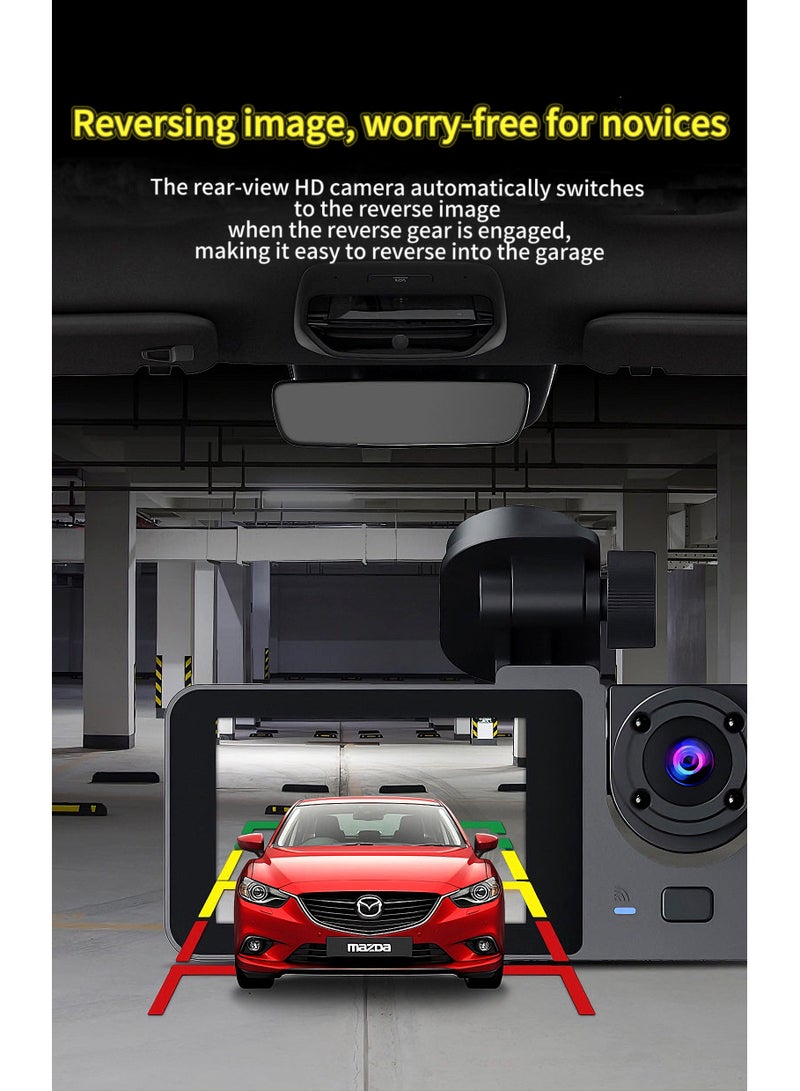Dash Cam 4k Front and 1080P Rear Camera, 32GB Memory Card, 360° FHD 3-Channel Car Dash Cam, Built-in 2.0 Inch IPS Car Camera, Wide Angle and Night Vision | G Sensor and Loop Recording | WDR | App Co